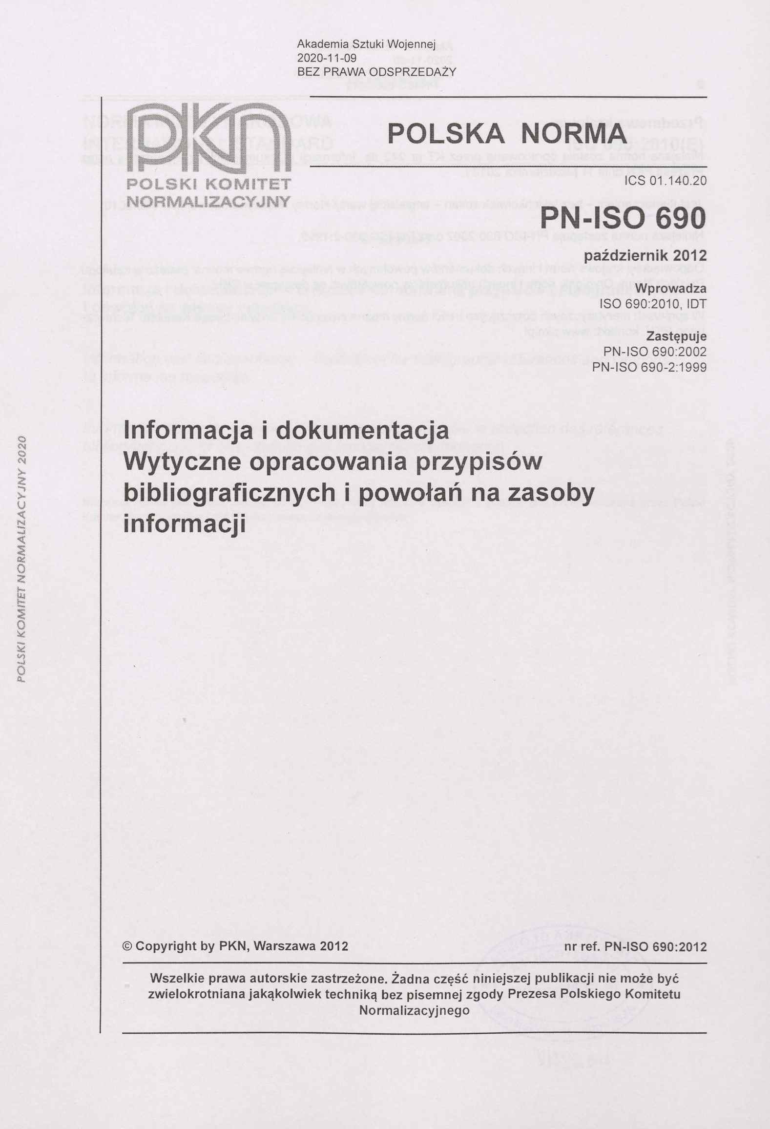 Norma wprowadza ISO 690:2010, zastępuje PN-ISO 690:2002 PN-ISO 690-2:1999.