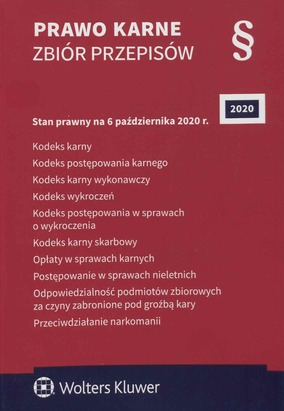 Prawo karne : zbiór przepisów. - 59. wydanie, stan prawny na 6 października 2020 r. - Warszawa : Wolters Kluwer, 2020. - 1161, [3] strony ; 21 cm.