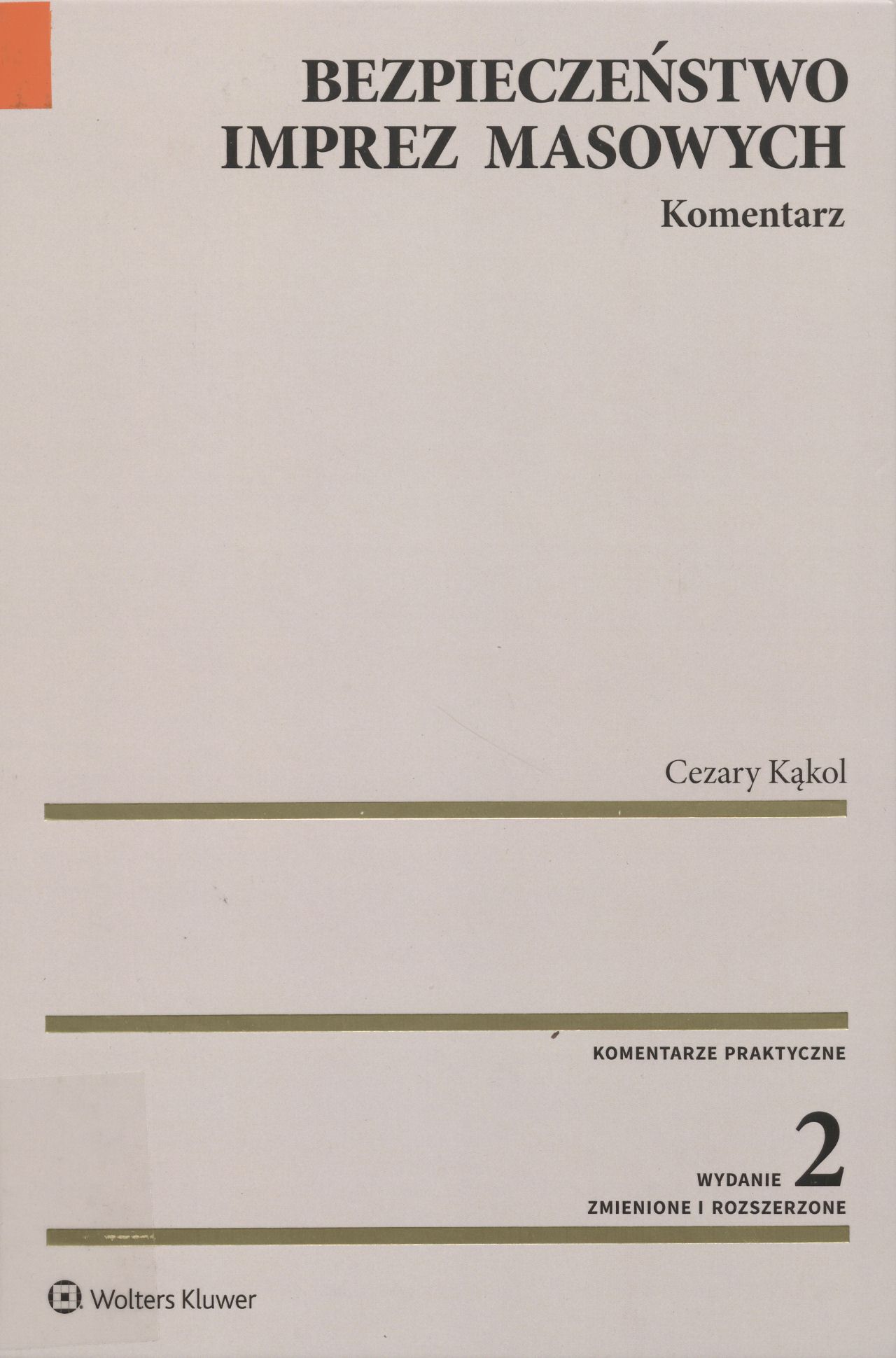 Bezpieczeństwo imprez masowych : komentarz / Cezary Kąkol. - Wydanie 2. zmienione i rozszerzone, stan prawny na 2 stycznia 2020 r. - Warszawa : Wolters Kluwer, 2020. - 576 stron ; 25 cm.