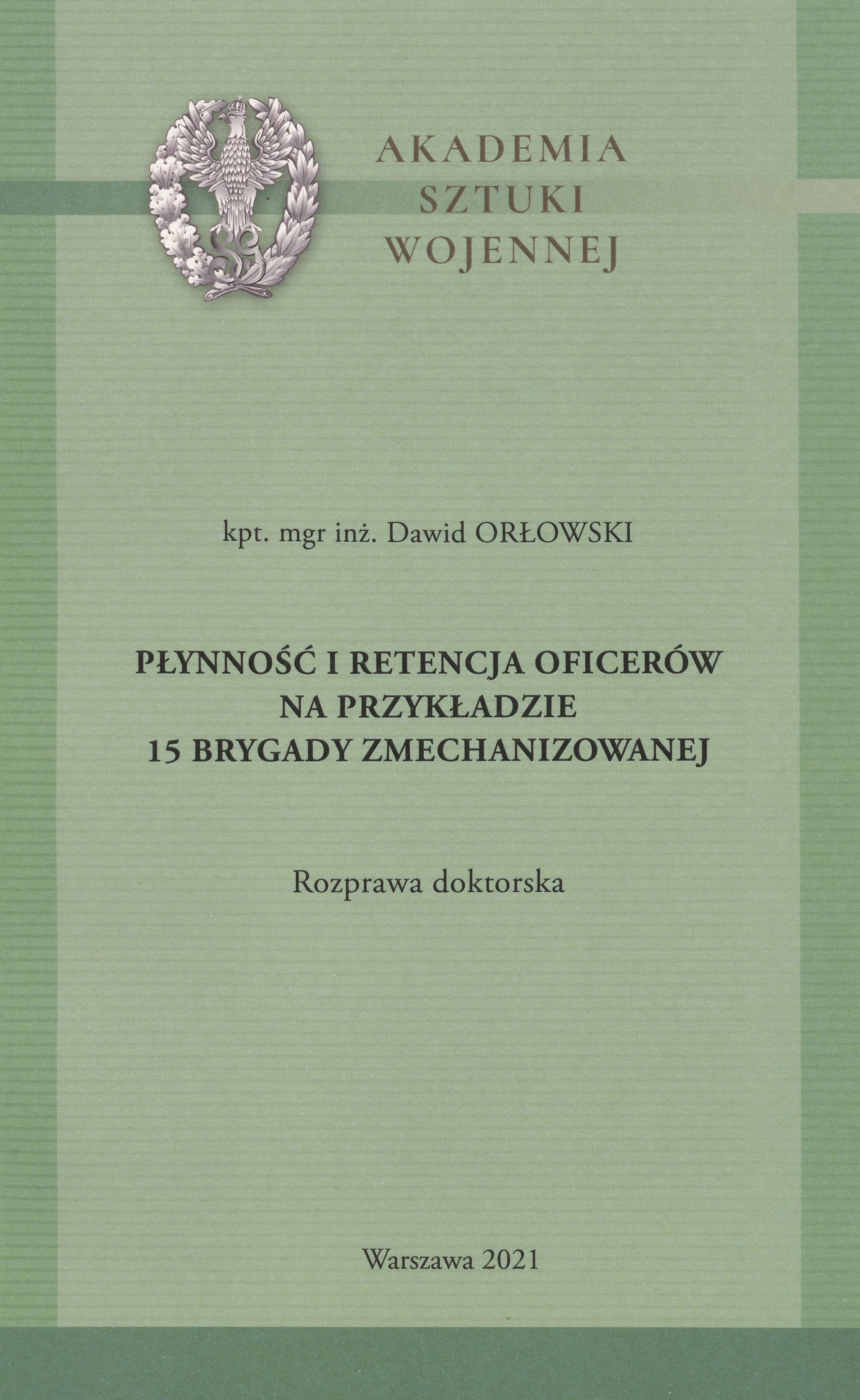 Rozprawa doktorska. Akademia Sztuki Wojennej, 2021.