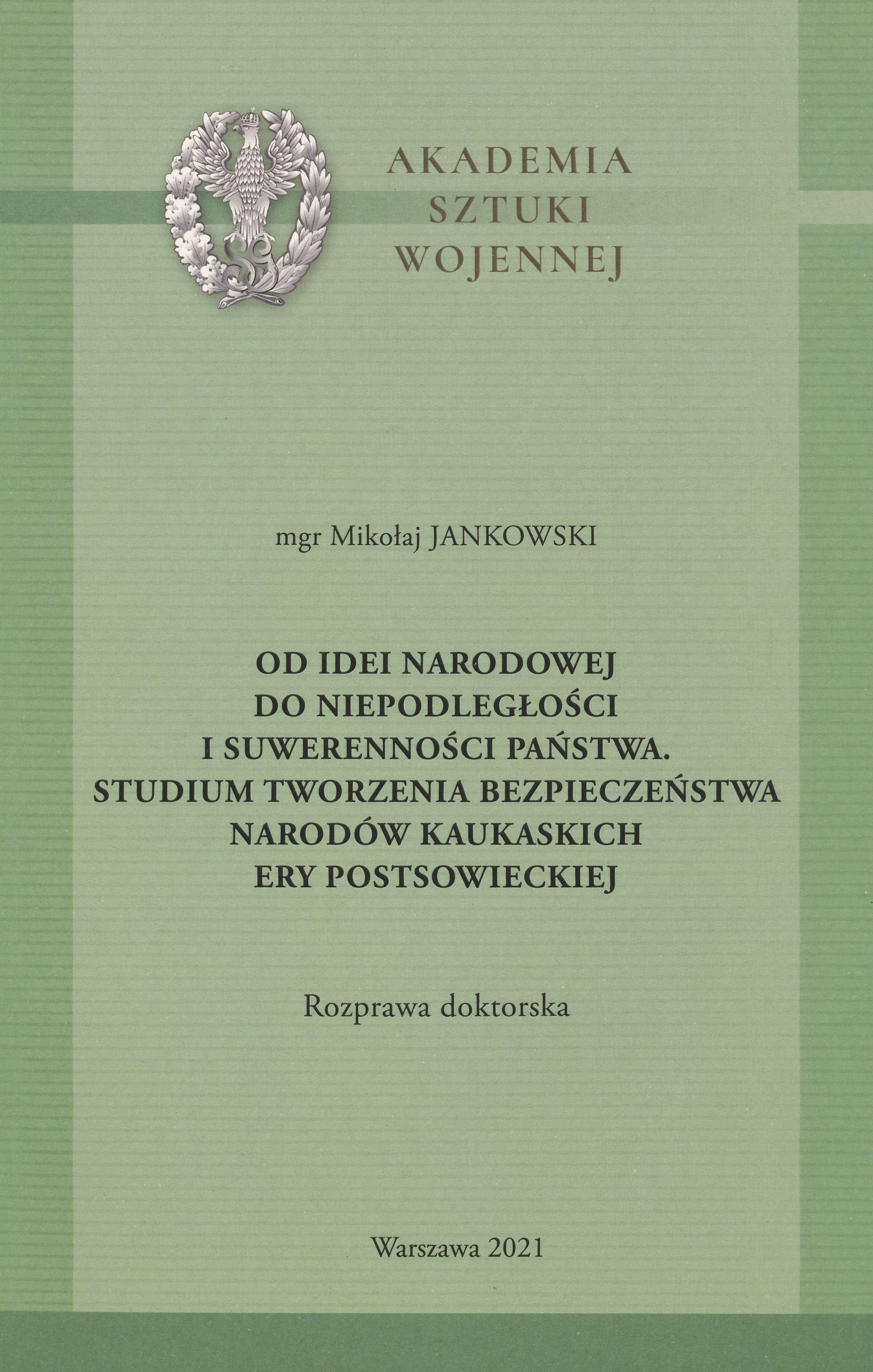 Rozprawa doktorska. Akademia Sztuki Wojennej, 2021.