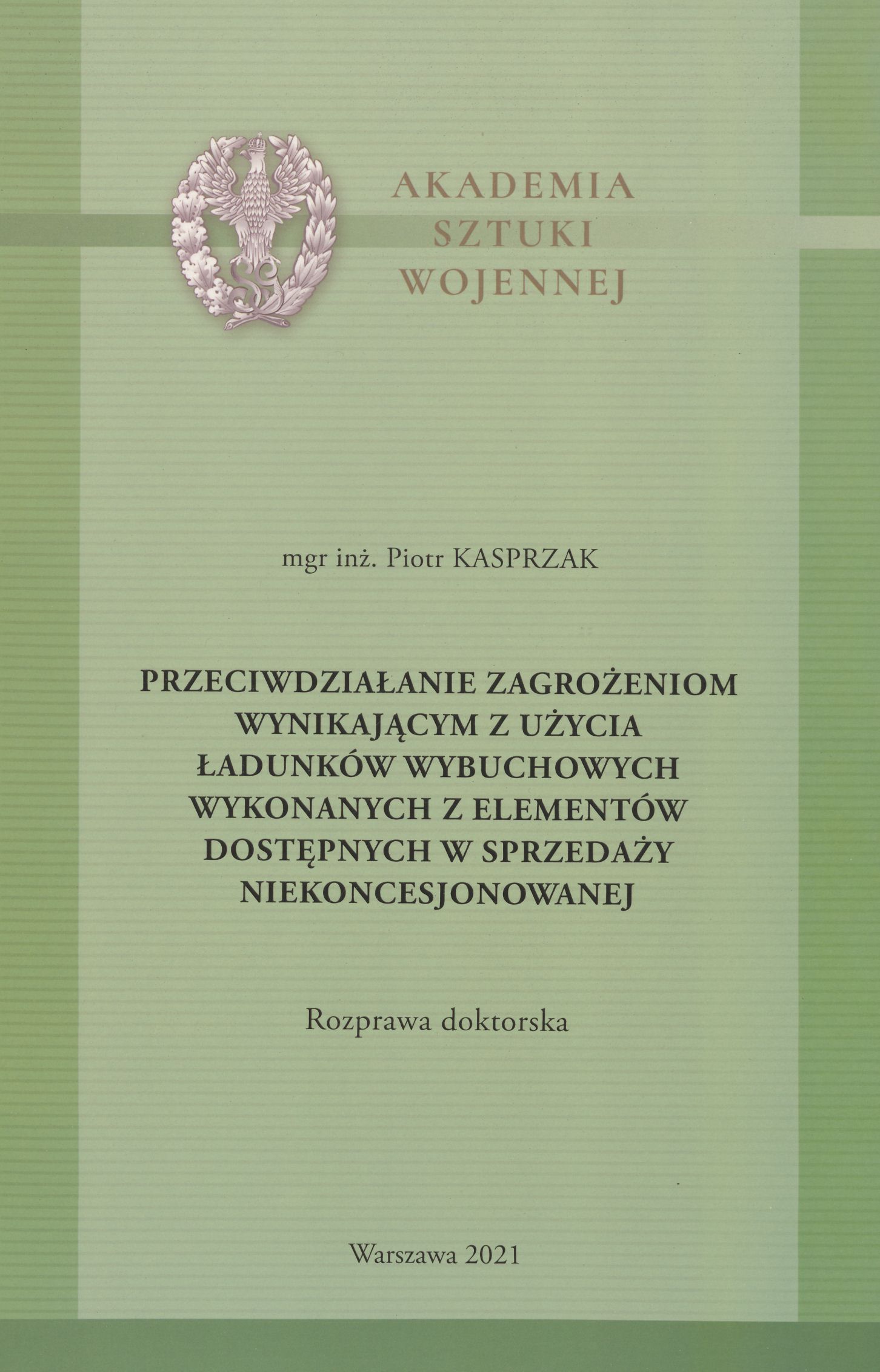 Rozprawa doktorska. Akademia Sztuki Wojennej, 2021.
