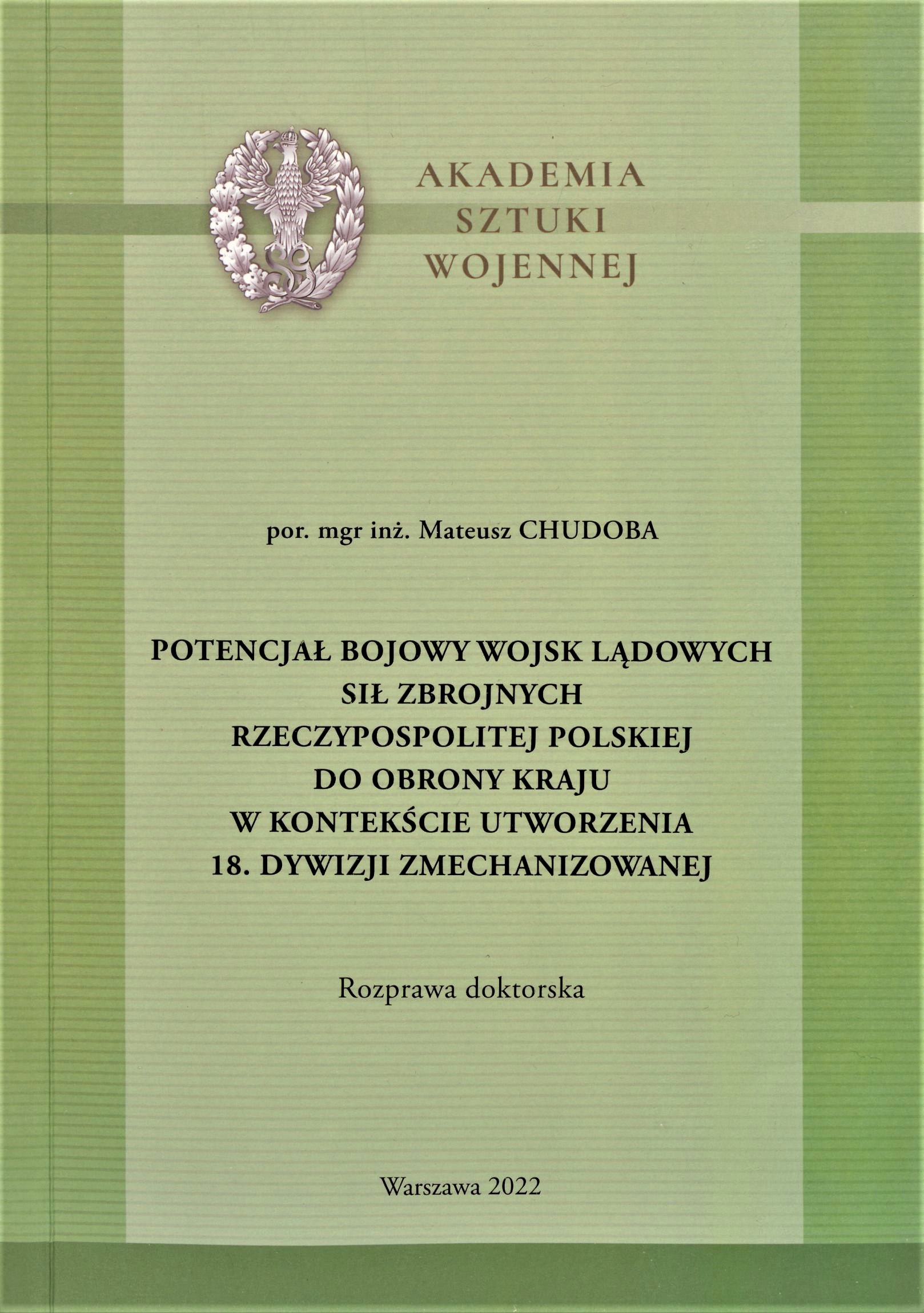 Rozprawa doktorska. Akademia Sztuki Wojennej, 2022.