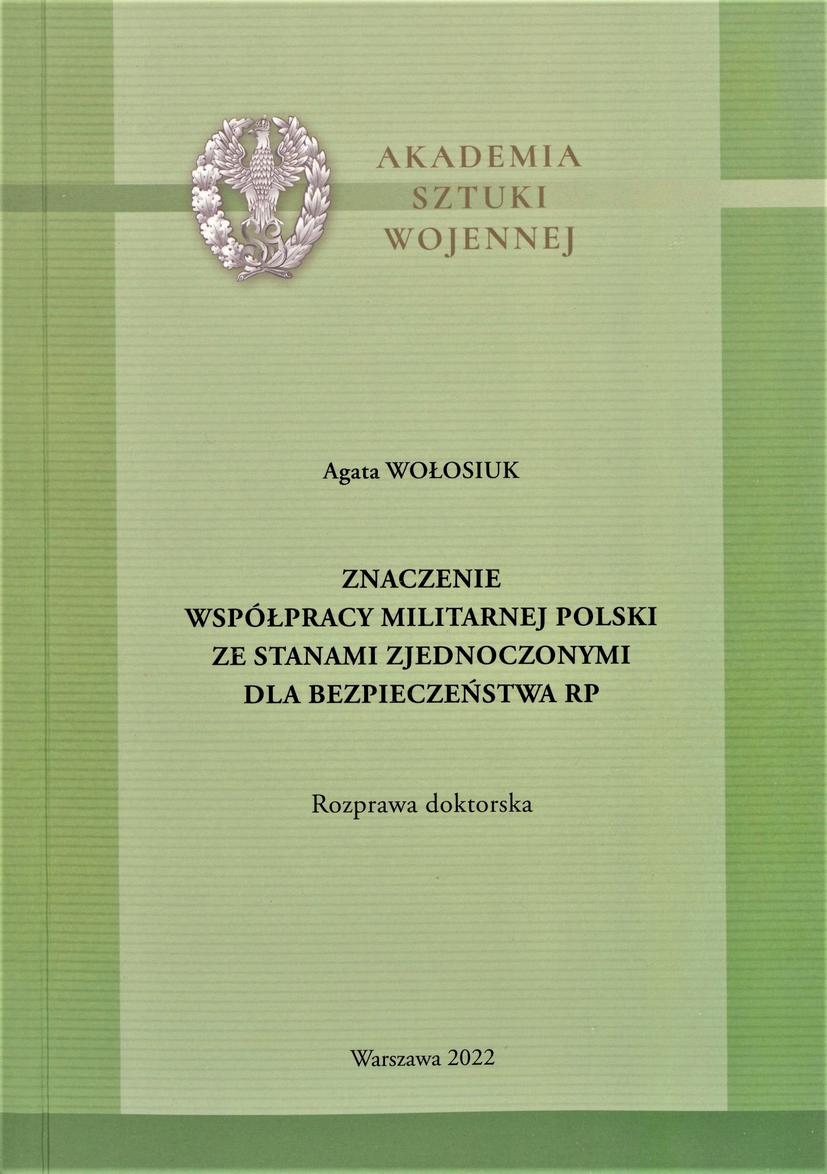 Rozprawa doktorska. Akademia Sztuki Wojennej, 2022.