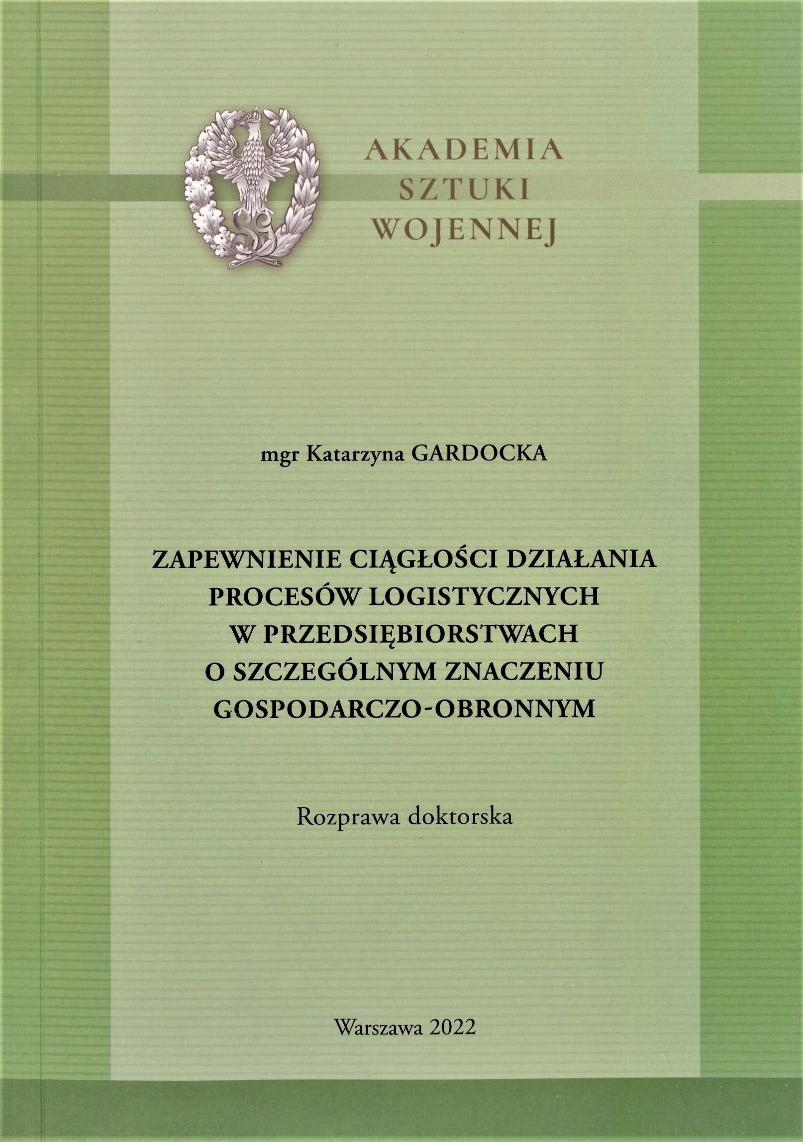 Rozprawa doktorska. Akademia Sztuki Wojennej, 2022.