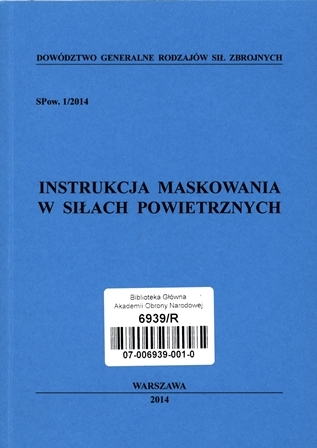 Instrukcja maskowania w siłach powietrznych / Dowództwo Generalne Rodzajów Sił Zbrojnych. - Warszawa : DGRSZ, 2014. - 134 strony, [1] k. : il. (w tym kolor.) ; 21 cm.