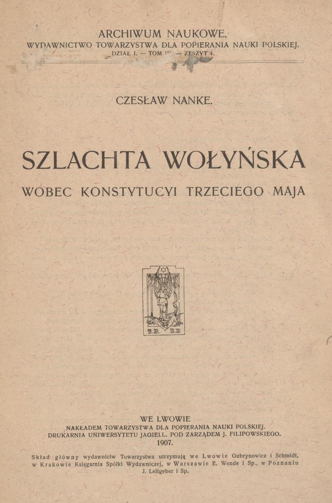 (Archiwum Naukowe. Dział 1 / Wydawnictwo Towarzystwa dla Popierania Nauki Polskiej ; t. 7 z. 1)